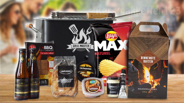 Het pakket wordt aangevuld met een selectie smaakvolle producten: Old Amsterdam crème, allioli, Remia satésaus, Jean Baton truffelmayonaise en Yil’driz BBQ saus. Voor de hartige trek vind je Lay’s Max chips en Scrocchi zeezout, en als zoete afsluiter marshmallows voor op de BBQ. Twee flesjes Steenberge premium pilsener maken het geheel compleet.