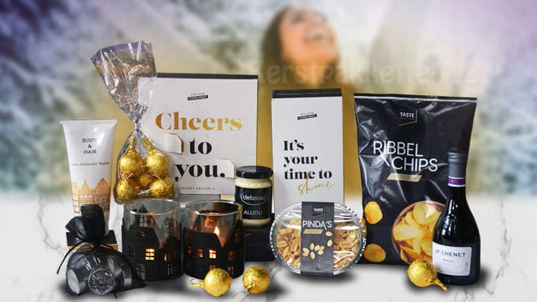 Op een aantal verpakkingen staat het al: “It’s your time to shine” en “Cheers to you”. Dit pakket is speciaal samengesteld om de ontvanger een gevoel van waardering en trots te geven. Om te laten zien dat ze er mogen zijn. Een moment van ontspanning, genieten, en even aan jezelf denken. Want iedereen verdient het om gewaardeerd te worden en volop te genieten van wat het leven te bieden heeft.