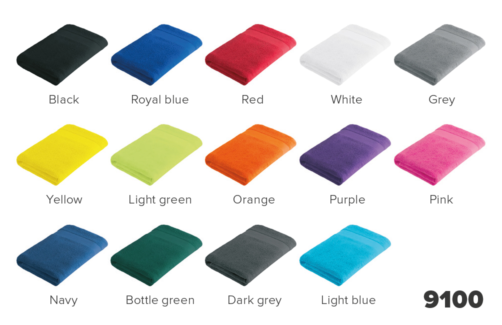 Deze handdoek is verkrijgbaar in diverse kleuren, waaronder zwart, kobaltblauw, rood, wit, grijs, geel, groen, navy, paars, roze.