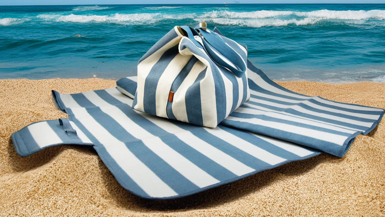 Zomerpakket strandtas en picknickkleed blauw wit gestreept – stijlvol en praktisch relatiegeschenk